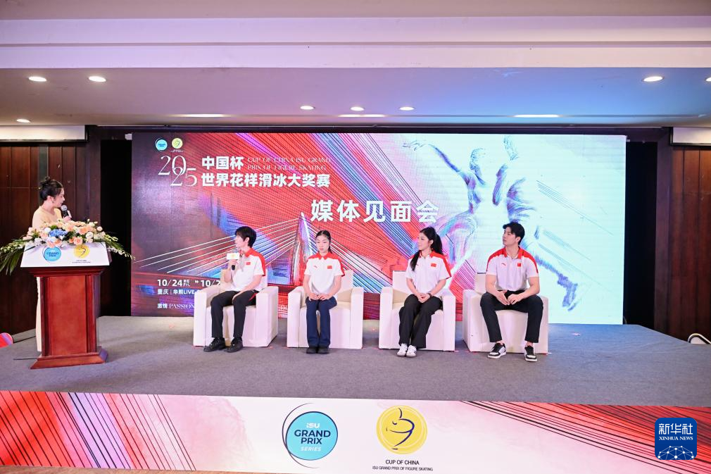 中国花样滑冰男单运动员金博洋、女单运动员张瑞阳以及冰舞组合王诗玥/柳鑫宇出席了见面会。金博洋表示,重庆的热情氛围与熟悉的赛场环境让他倍感亲切,同时透露本赛季的节目中藏有精心设计的细节;刚升入成年组的张瑞阳表示,本赛季拿下亚洲公开赛冠军让她收获满满信心,此次中国杯她希望能进一步突破自我;王诗玥/柳鑫宇对再次回到中国杯表示期待,并希望能通过演绎与以往不同风格的节目让大家耳目一新。