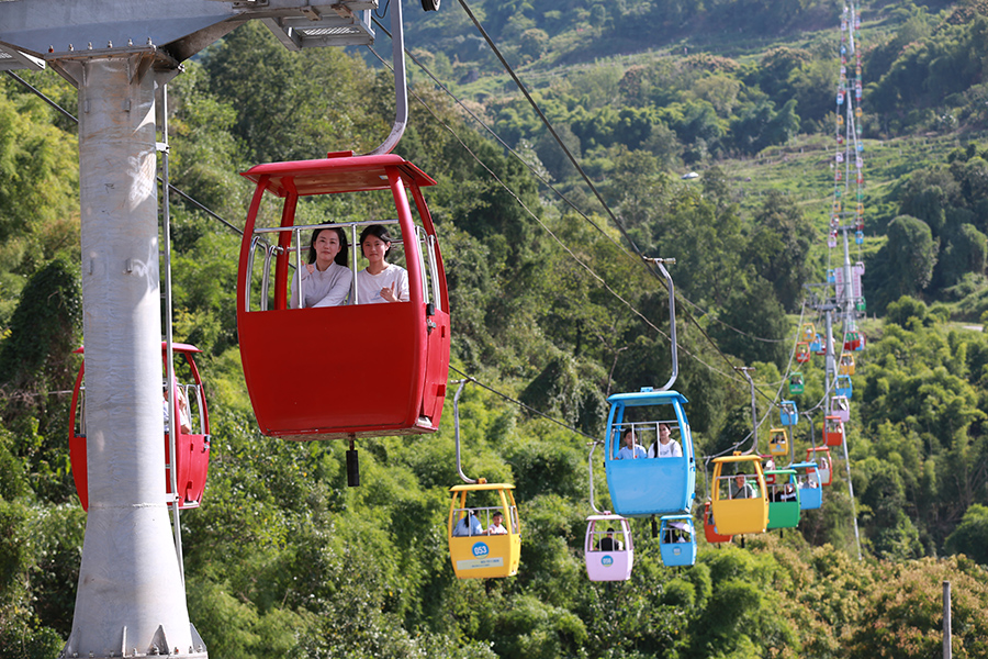 美心红酒小镇景区内,游客乘坐索道观光。新华网发(受访者供图)