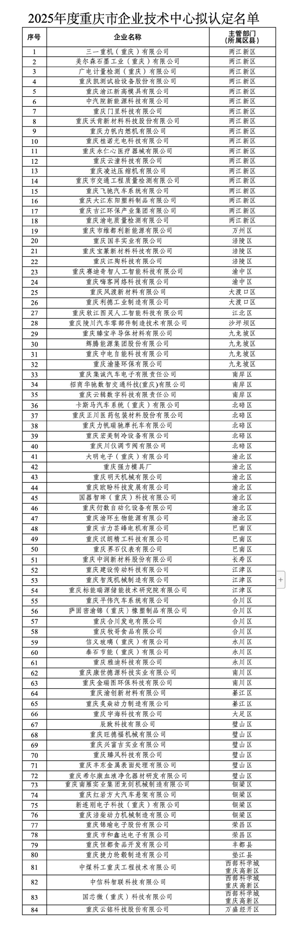 推动产业技术创新,需要培育一批企业技术中心,让它们成为加强创新驱动发展的支撑力量。10月11日,市经济信息委公示2025年度市级企业技术中心名单,共84家企业技术中心入选。