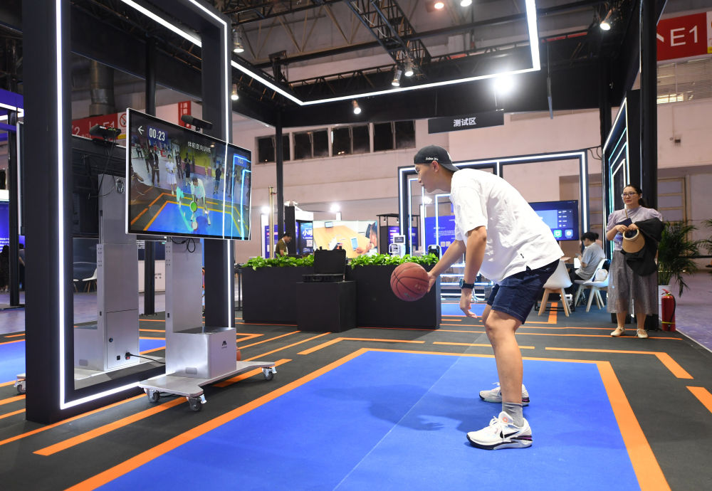 观众体验AI智慧体育运动系统。新华社记者 任超 摄