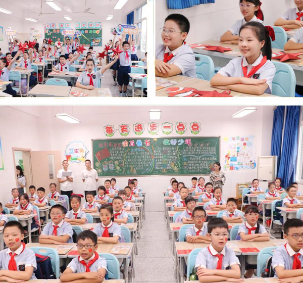 活动现场,同学们小手高高举着彩色标牌,一张张稚嫩可爱的脸元气满满。