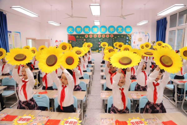 同学们小手摇晃,一朵朵向日葵如金色的阳光在教室绽放,映衬着张张笑脸,满是蓬勃的朝气。