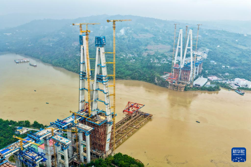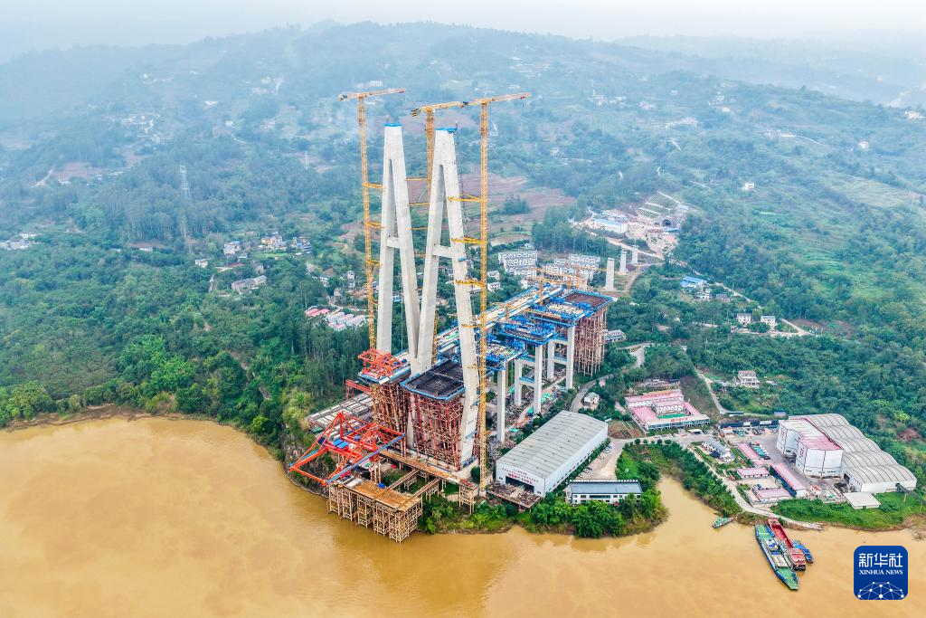 这是10月17日拍摄的渝万高铁石沱长江大桥建设现场(无人机照片)。
