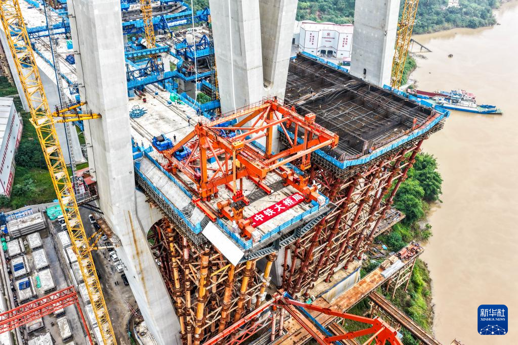 石沱长江大桥位于重庆市涪陵区,是渝万高铁全线控制性工程。本次架设的结合梁段长9.625米,宽23.6米,高4.514米,重约550吨。