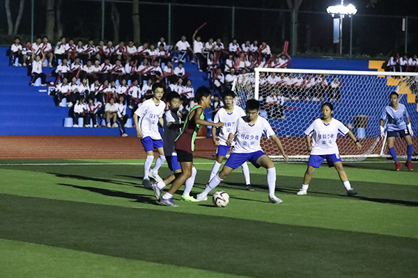 比赛采用七人制简化赛制,学生在比赛中展现出良好的竞技水平和体育风尚。精准的传球、默契的配合、精彩的射门,两个场地同时进行的揭幕战共打入11粒有效进球。
