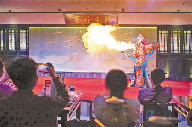 10月13日,“种草官”欣赏川剧绝技吐火。记者 梅耀 摄\视觉重庆