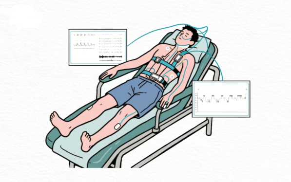 通过连接在身体不同部位的无创传感器,这项检查能整夜不间断地收集以下信息: