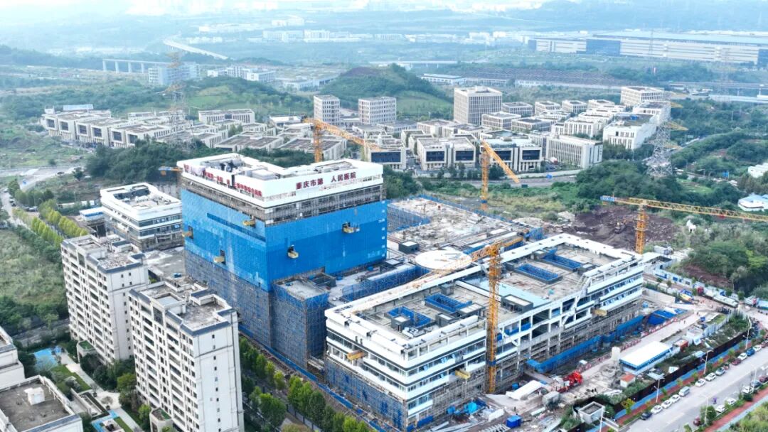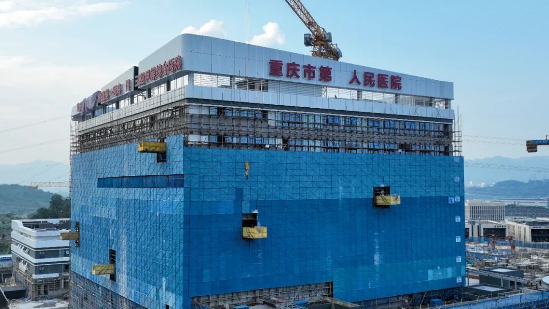 近日,走进重庆市第六人民医院(重庆医药高等专科学校附属第一医院、市职防院)北部院区一期工程项目建设现场,只见医院建筑群外立面幕墙铺设大半,院名等核心标识正在悬挂安装……