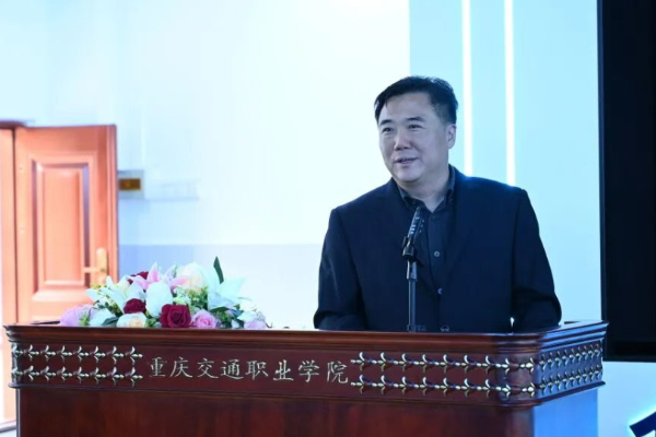 重庆交通职业学院校长梁乃兴在致辞中表示,学校始终坚持“立足交通、面向市场、服务社会”办学定位,推动学校内涵式发展,不断提升育人质量,为社会培养输送了一批又一批高素质技术技能人才。大会围绕“深化产教融合,服务区域发展”主题,旨在凝聚共识、汇聚合力,助力职业教育服务区域经济社会发展、赋能产业升级。学校将精心组织安排,全力做好服务保障,确保大会成功,并愿以此次大会为新起点,与各方携手,共同推动职业教育发展。