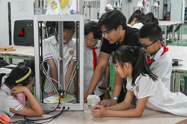 走进赛力斯智慧工厂,跟随赛力斯讲解员,沉浸式体验汽车从零件到成品的整个制造过程;到访重庆大学国家卓越工程师学院,与专家学者面对面交流,深入了解新工科领域的实际应用和发展趋势;探访重庆工业职业技术大学,参与“智造未来”3D打印、“护航蓝天”民航安全、“谁主沉浮”物理化学和“工赴新程”工业机器人等4项科技实践活动……这种走出校园,参观企业、探访高校,亲身体验、真切感受的科学教育新生态已然成型。
