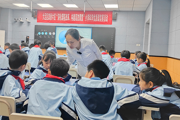 优质课竞赛活动上,老师正在和学生互动。