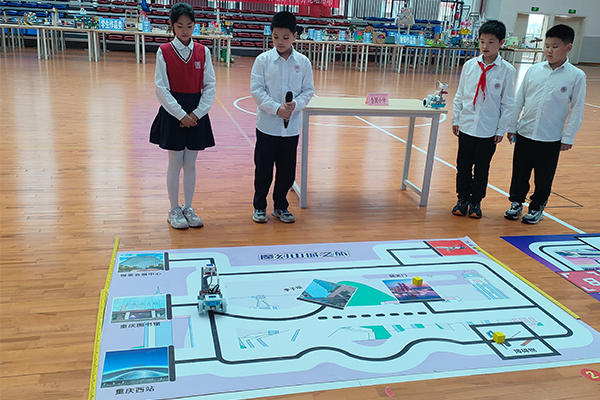 香国小学学子们的编程机器人正进行展演。