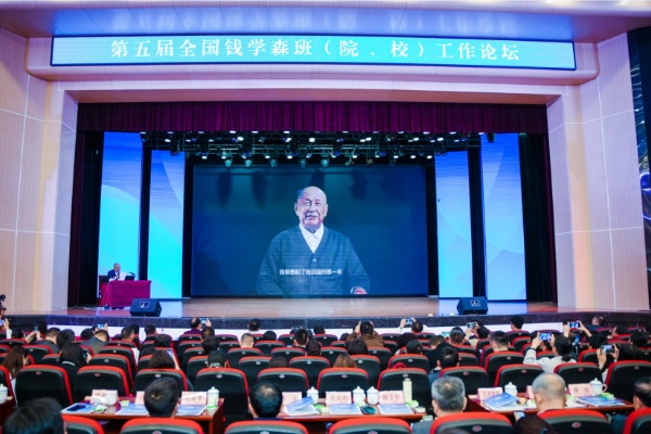 讲座最后,“数字钱学森”寄语成为亮点。通过数字化技术复原的钱学森影像,跨越时空与现场学子温情对话,殷切嘱托青少年心怀家国,以科学报国为己任,在追梦路上勇攀高峰。