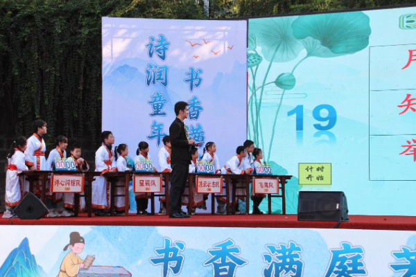 近日,天台岗融创小学第十一届“融创杯”诗词大会启幕。南岸区教师进修学院教学研修部副主任胡平,中国当代著名诗人、词作家、重庆市公安作协主席李尚朝,中国作家协会会员、重庆市诗词学会格律体新诗专委会主任万龙生,重庆市南岸作家协会诗词创委会主任、南山诗社社长半川,以及来自天台岗小学教育集团9校点,泸州、彭水苗族土家族自治县友好学校师生代表、家长代表等齐聚一堂,学子们以诗为媒、以赛会友,共同演绎中华经典的千年韵味与时代风采。
