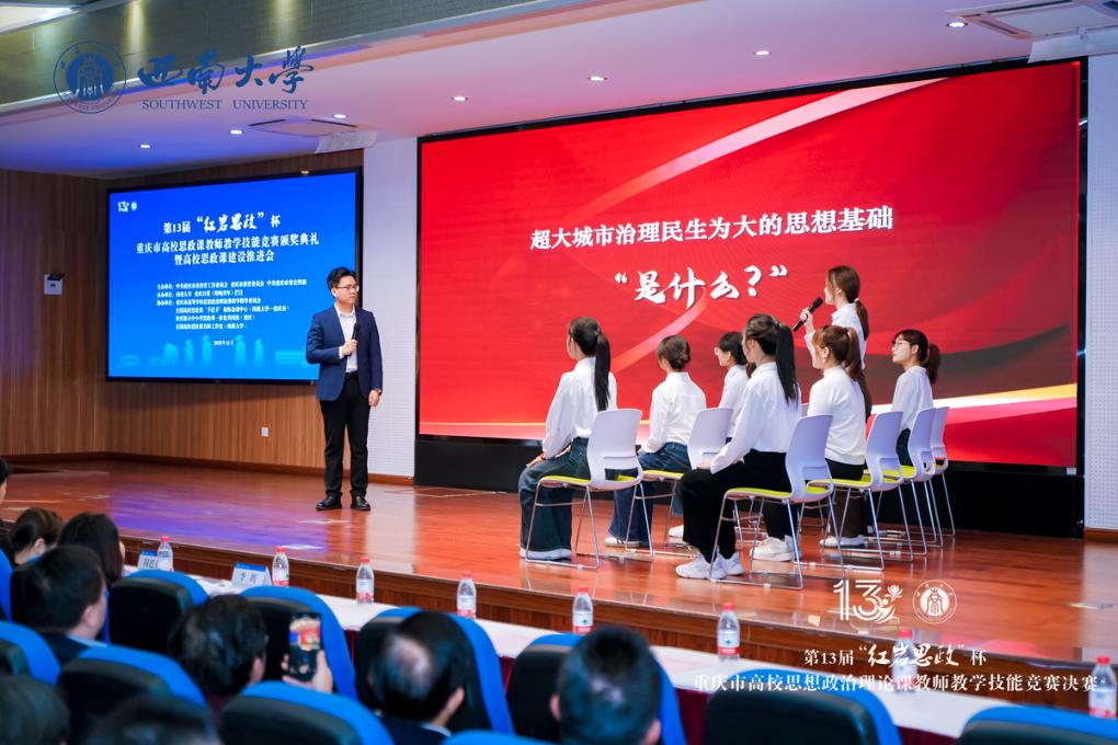 会上,来自西南大学、西南大学附属中学、重庆一中、重庆谢家湾学校的师生以“超大城市治理:民生为大”为题,进行了精彩的大中小学思政教育一体化专题成果展示。现场为获得优秀组织奖的高校和获奖教师代表颁发了荣誉证书。