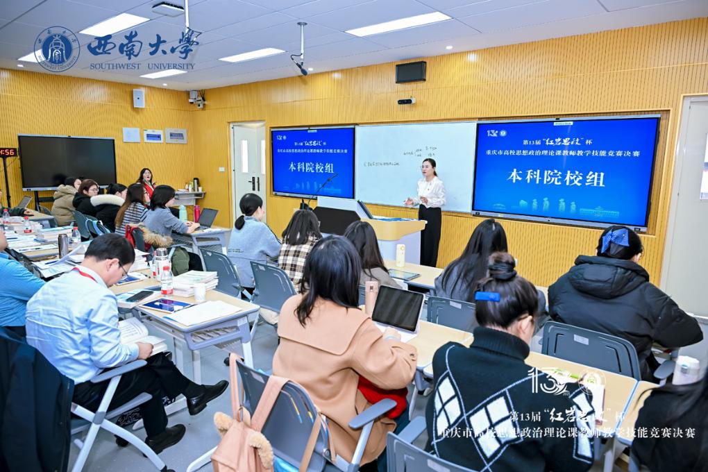 据介绍,此次竞赛,经过校级初赛选拔,共有69所高校280名教师参加复赛,规模、人数均创新高。决赛共80名教师参赛,分为本科和高职高专两个组别,包含理论测试和现场授课两个环节。重庆市高校思政课教师教学技能竞赛已连续举办13年,已成为检验重庆市高校思政课教师教学能力、推动思政课改革创新的重要平台和打造具有重庆辨识度、全国影响力的“红岩思政”育人品牌的有力抓手。