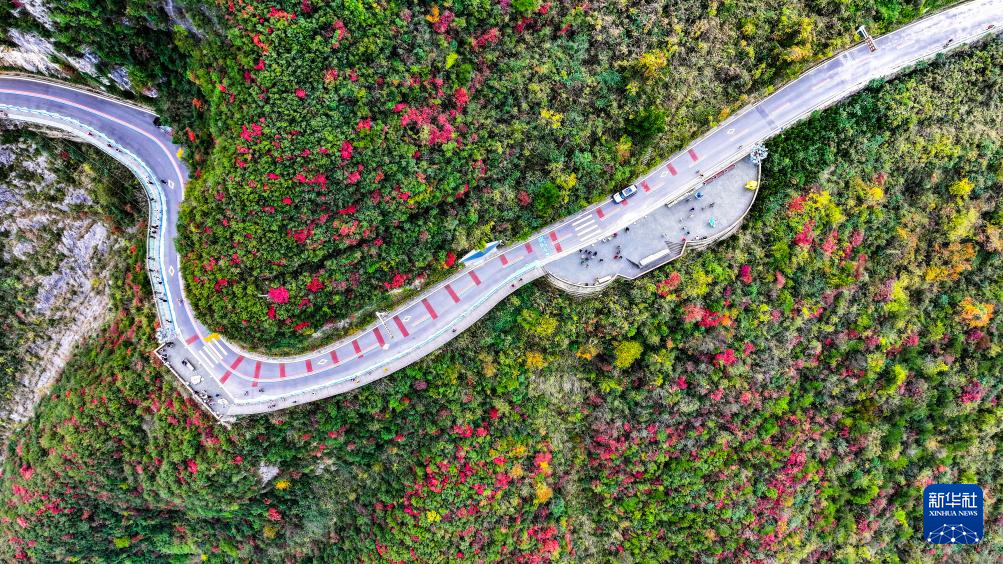 11月22日,游客在重庆巫山神女景区游览(无人机照片)。新华社记者王全超摄
