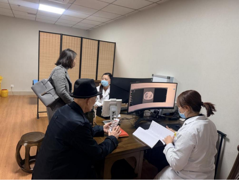 在呼吸病中西医联合门诊,重庆市中医院呼吸与危重症医学科(肺病科)中西医结合主任中医师徐萍利与重医附一院呼吸与危重症医学科副主任医师杨丽两位专家共同为患者李先生看诊。他表示“能同时让中西医的两位专家为我看诊,不仅就诊流程更便捷,费用也更节约,效率太高了。”