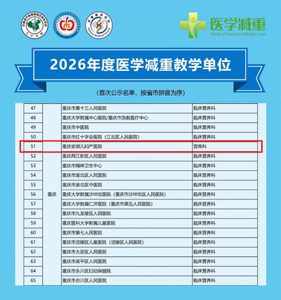 近日,“2026年度医学营养减重教学单位”遴选活动公布结果,重庆安琪儿妇产医院营养科成功入选。
