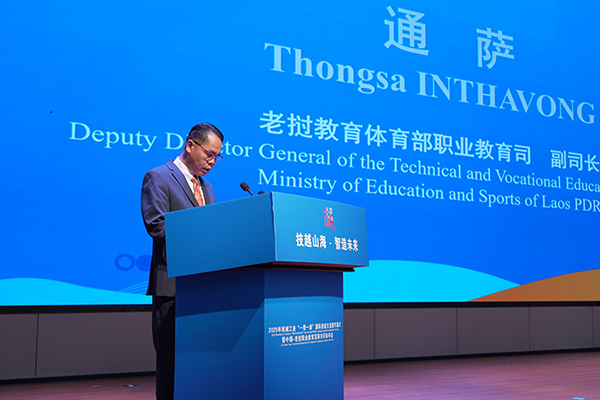 老挝教育体育部职业教育司副司长通萨致辞。
