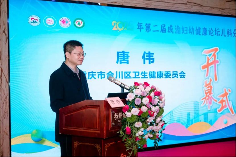 合川区卫生健康委员会党委委员、区计生协会常务副会长唐伟致辞。