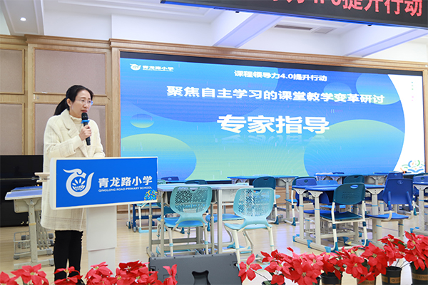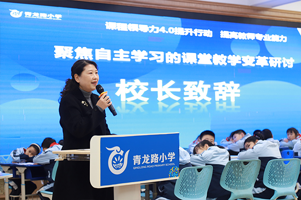 青龙路小学党支部书记、校长赖琍在致辞中指出,自主学习是培养学生核心素养的关键,课堂教学应坚持学生为本,引导学生主动探究、合作学习。她强调,本次活动通过深化课程与自主学习融合的教学改革实践,为学校教育教学注入新活力,希望全体教师以此次活动为契机,积极反思、大胆实践,共同推动教学质量全面提升。