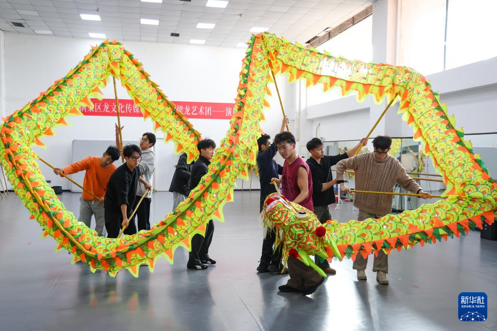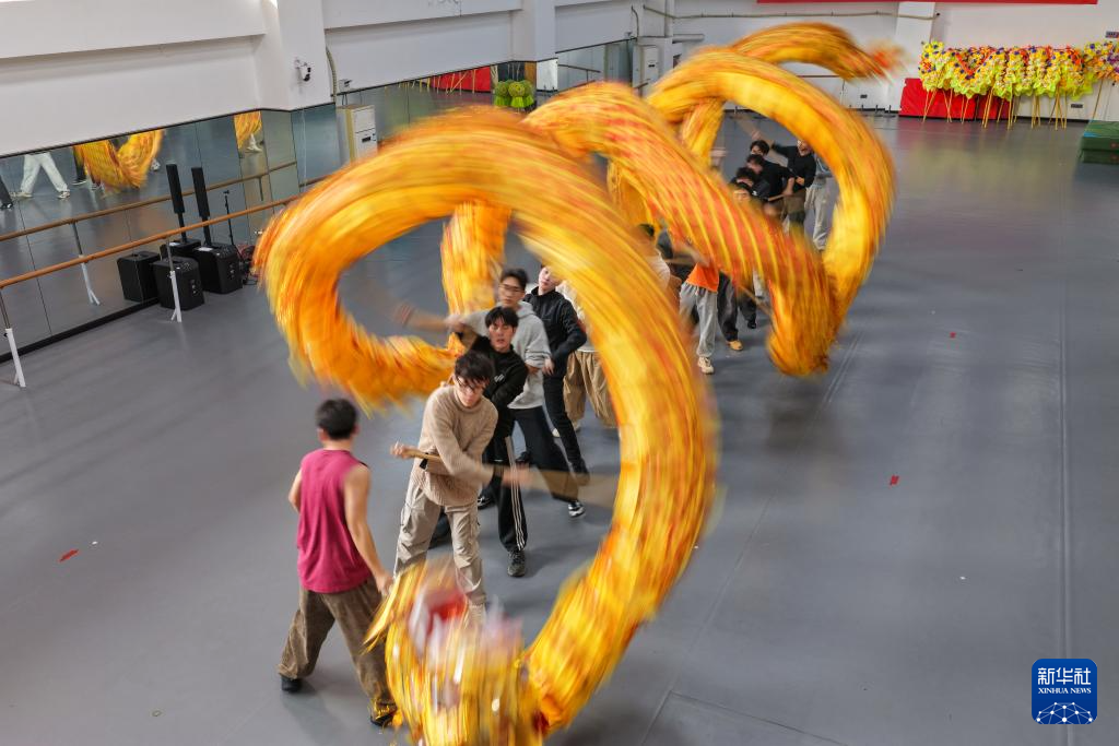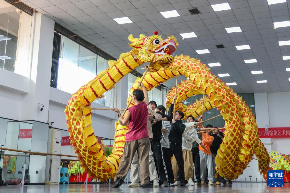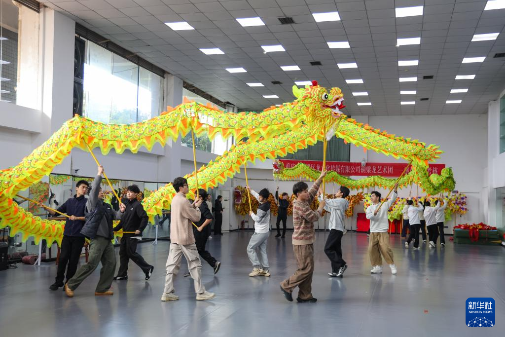 12月7日,重庆铜梁龙艺术团竞技舞龙队队员在进行日常训练。新华社记者 黄伟 摄