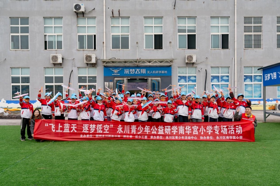 “飞上蓝天 逐梦低空”永川青少年公益研学南华宫小学专场活动。