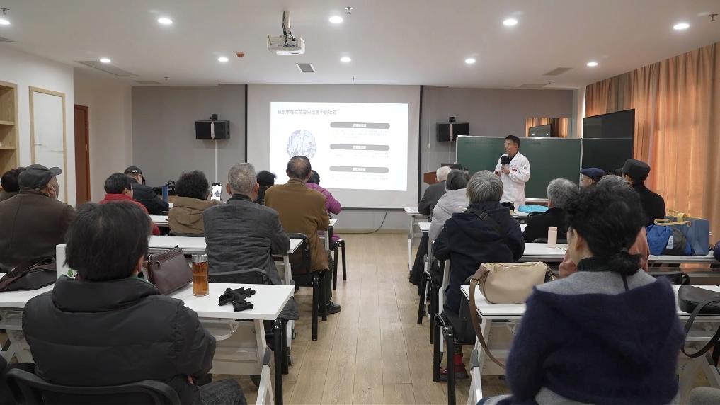 近日,在安徽省明光市老年大学的“校外课堂”明光市中医院治未病中心,学员们正在练习养生操,学习中医保健知识、进行中医适宜技术干预体验活动。