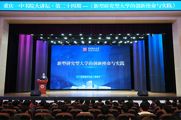 何为新型研究型大学?深圳理工大学有何新特色?当新型研究型大学遇见新重庆会有怎样的教育新航向?12月22日,深圳理工大学首次入渝,深圳理工大学校长樊建平以《新型研究型大学的创新使命与实践》为题,在重庆一中进行“重庆一中书院大讲坛”主题分享,全方位解码学校特色办学内核、专业育人体系、人才培养理念与精准招生政策等,为重庆一中千余名学生带来一场与前沿教育双向奔赴的向“新”之旅。