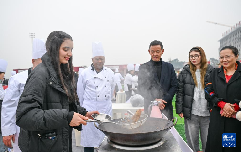 12月30日,参赛选手现场烹制当地特色美食。新华社记者 陈诚 摄