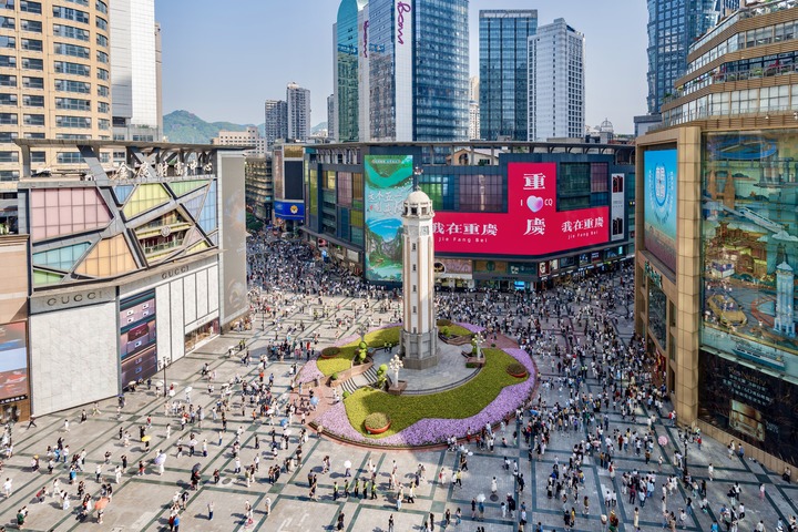 重庆解放碑步行街上人流涌动。新华社发(罗云希 摄)