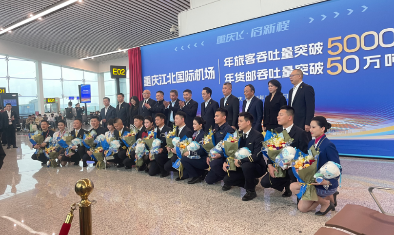 当日下午,重庆江北国际机场迎来发展史上重要一刻——年旅客吞吐量首次突破5000万人次,正式迈入全球机场“5000万俱乐部”。这也是继机场年货邮吞吐量突破50万吨后(预计全年完成近55万吨),实现的又一重大跨越。
