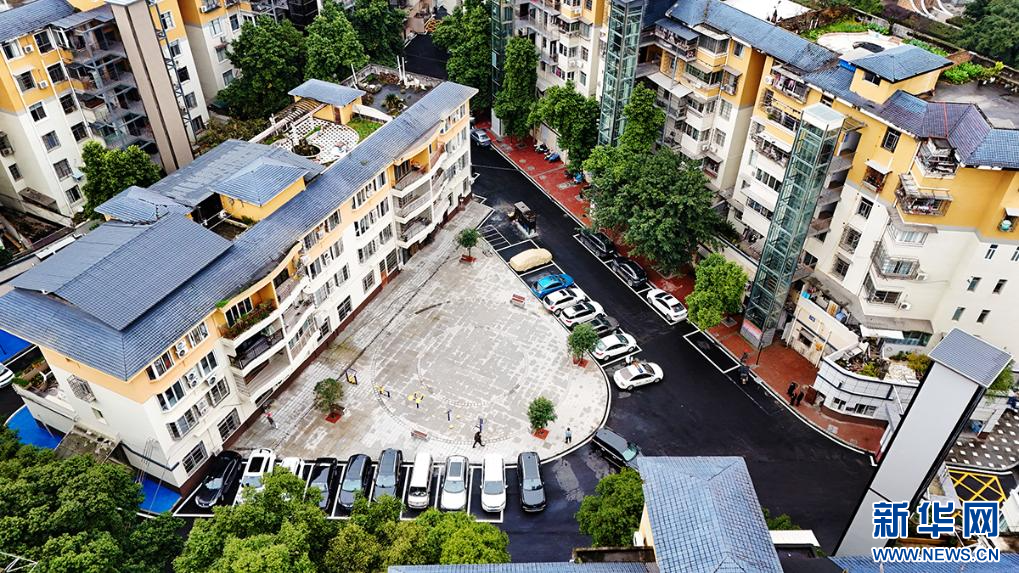 中天名居小区通过电梯加装、文化植入、新增停车位、无障碍坡道等改造,让小区面貌焕然一新。彭博 摄