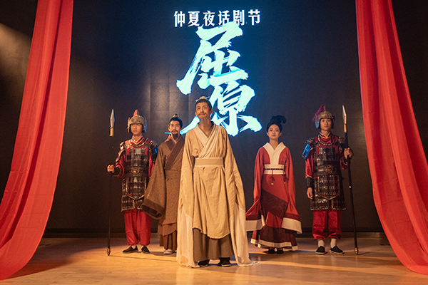 南渝学子在舞台上再现历史剧《屈原·雷电颂》片段。