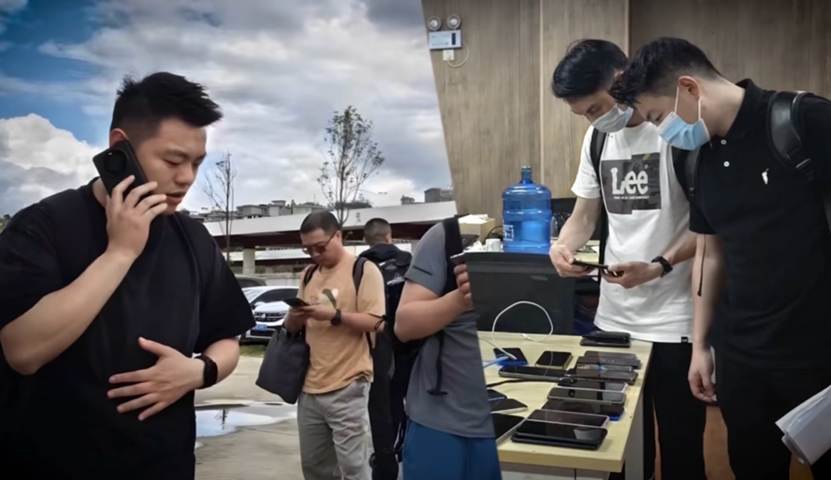谢晶鑫在外地执行反诈抓捕任务,核查涉案手机。受访者供图