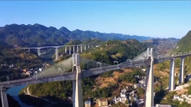 黔张常铁路桥与黔恩高速桥交相辉映