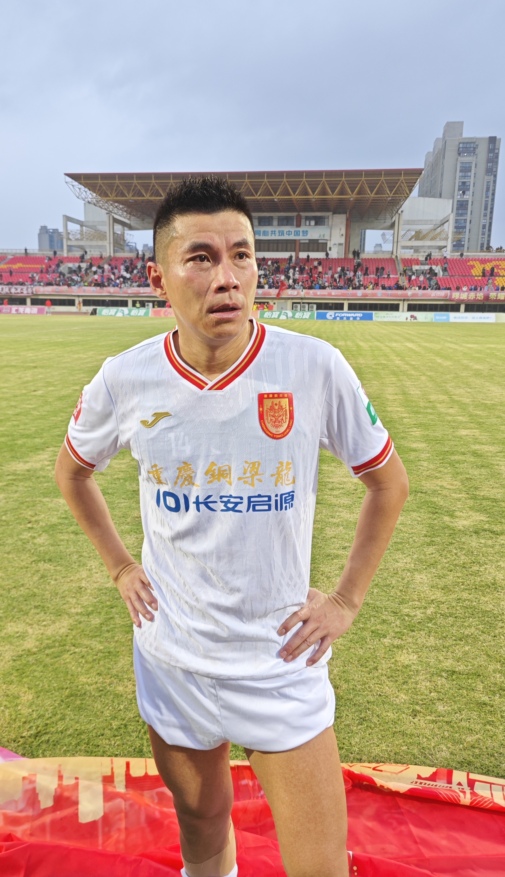 ▲2025年11月8日,重庆铜梁龙冲超成功,黄希扬泪洒球场。记者 金鑫 摄