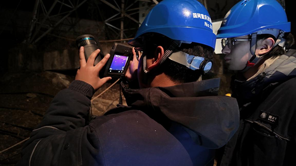 国网重庆巫溪供电公司员工启动融冰后对110千伏河白西线开展测温。(郑航 摄)