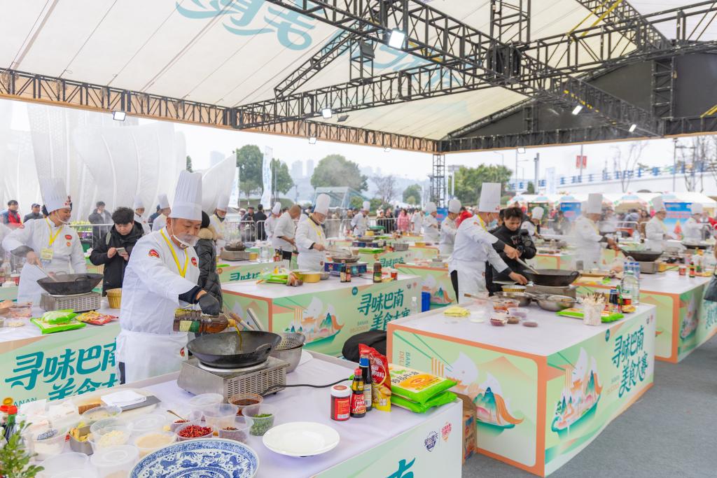 新华社客户端重庆1月24日电 23日,重庆市巴南区在山·茶花广场举办“乐享新春·约惠巴南”2026迎新消费季活动。活动现场,来自巴南区内的40余家餐饮企业齐聚厨艺比拼区,同台展示、交流技艺。