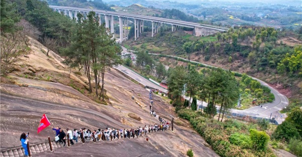 梁平区滑石古寨景区,市民游客在登山游玩。(资料图)