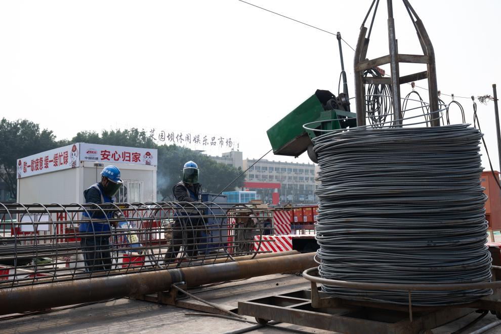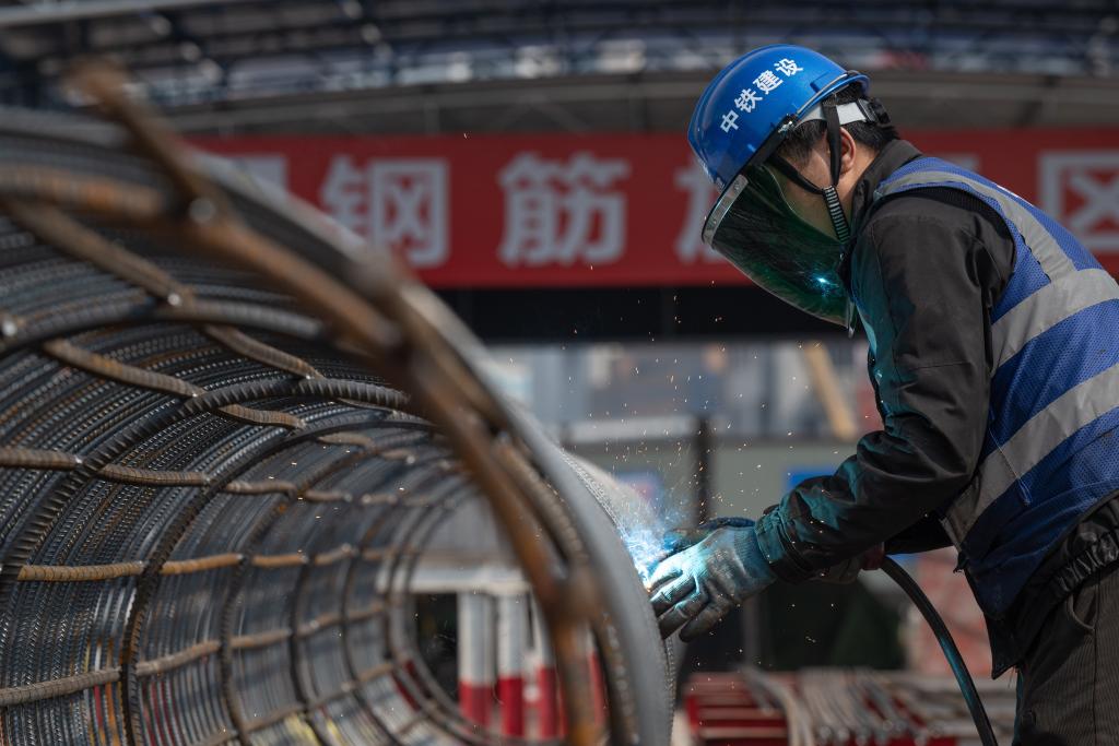 2月11日,工人在重庆站项目施工现场进行电焊作业。新华社记者 陈诚 摄