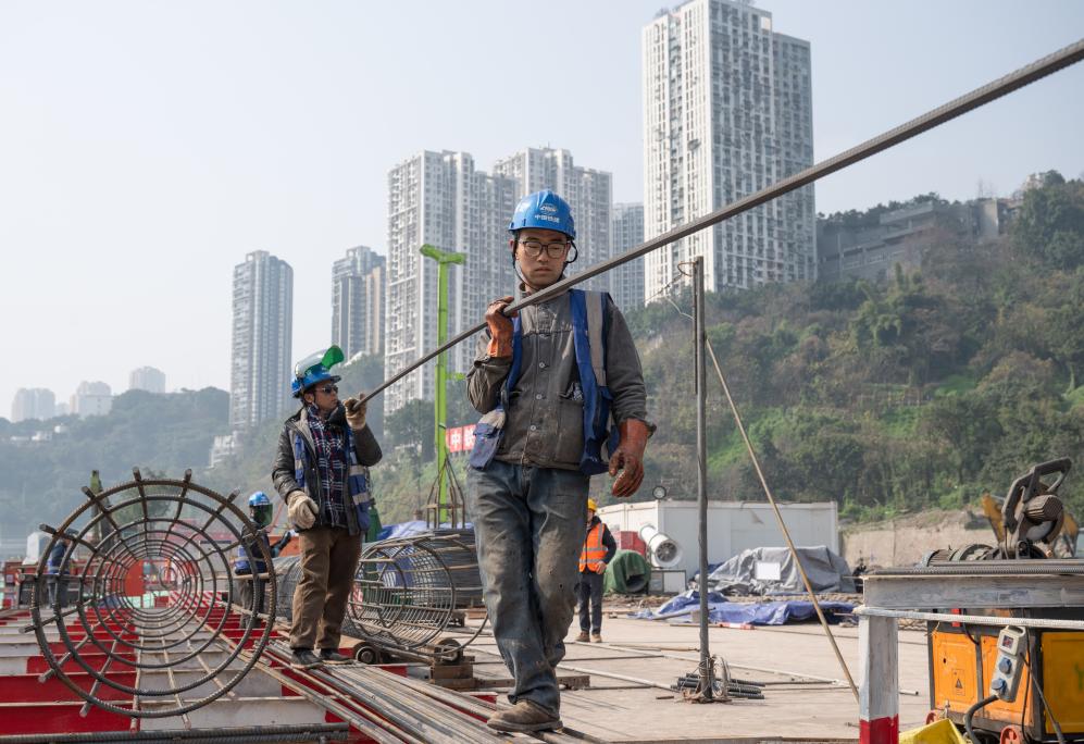 2月11日,工人在重庆站项目施工现场作业。