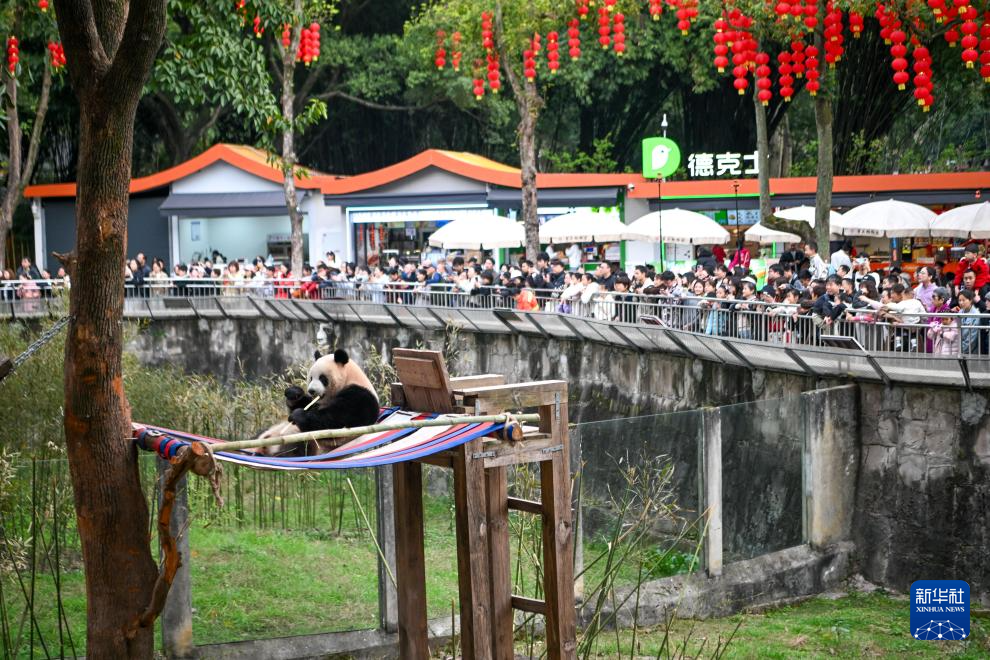 2月24日,人们在观看大熊猫。新华社记者 唐奕 摄