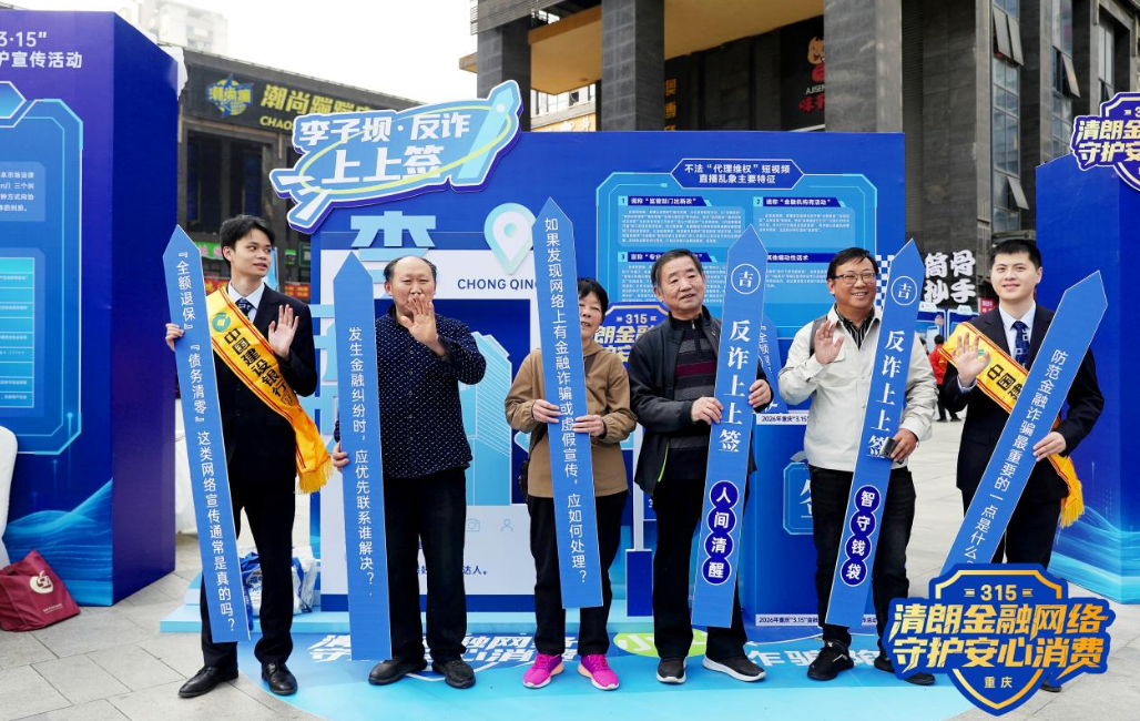 建行重庆市分行消保部负责人表示,“今年‘3·15’期间,我们聚焦一老一少、两司两员等重点群体精准发力,常态化开展校园金融教育,防范校园贷、刷单诈骗,守护青少年成长,并深入社区‘骑手驿站’、工地、商圈,面向‘两司两员’等新就业群体普及反诈、征信与理财知识,提升风险识别能力。”