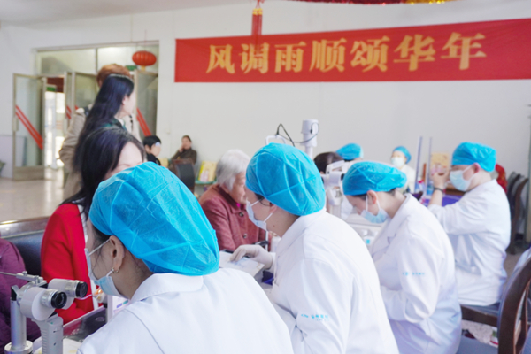 义诊环节,医护人员为退休教职工免费开展视力检测、眼压测量、裂隙灯检查及眼底等基础筛查,细致排查眼部隐。针对检查结果进行一对一解读,为存在眼部健康隐患的居民给出个性化诊疗建议,并建立详细的健康档案以便后续跟踪随访。