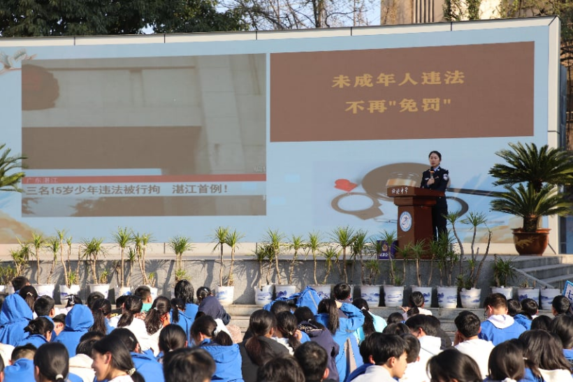 “同学们,你们知道吗?打架斗殴在法律层面要承担什么后果?”在梓潼中学的操场上,“冬琴护苗”工作室民警吴冬琴以新修订的《中华人民共和国治安管理处罚法》为切入点,用一个个真实案例,为同学们划清了法律“红线”。