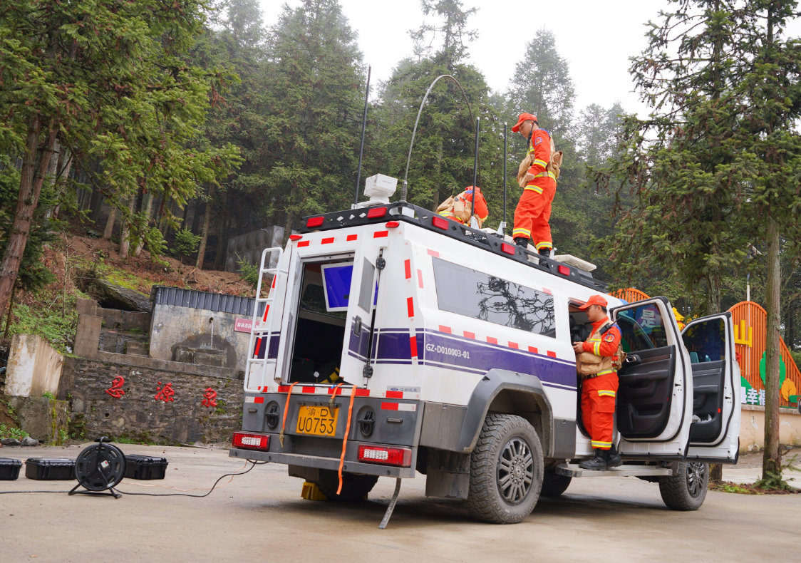 应急响应与机动集结环节重点检验了队伍的快速反应能力。行进途中,各编队不仅要应对复杂道路驾驶,还要同步完成突发情况处置、信息报送等课目训练,确保指令畅通、行动有序。队伍抵达集结地域后,选址组迅速勘察地形,警戒防卫组立即到位,综合协调组牵头在短时间内完成指挥帐篷、通信帐篷、保障帐篷的搭建。同时,前突车、卫星通信、370专网、无线图传等多种手段迅速联通,实现现场指挥部与市应急指挥部、县应急指挥部的音视频互通,为后续作战行动奠定了坚实的指挥基础。