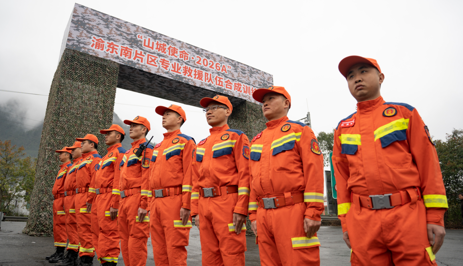 “山城使命·2026A”重庆市渝东南片区专业应急救援队伍合成训练现场。