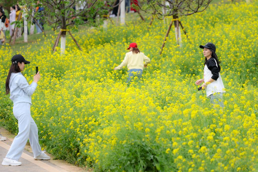 3月22日,在重庆市巴南区二圣镇集体村云林天乡景区,游客在油菜花丛中拍照。新华社记者 黄伟 摄